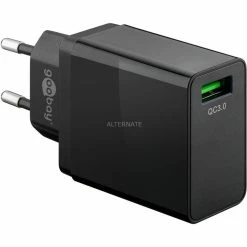 Handy Ladegeräte Goobay USB Schnellladegerät QC3.0 (18W) Schwarz (schwarz, Quick Charge (QC3.0))