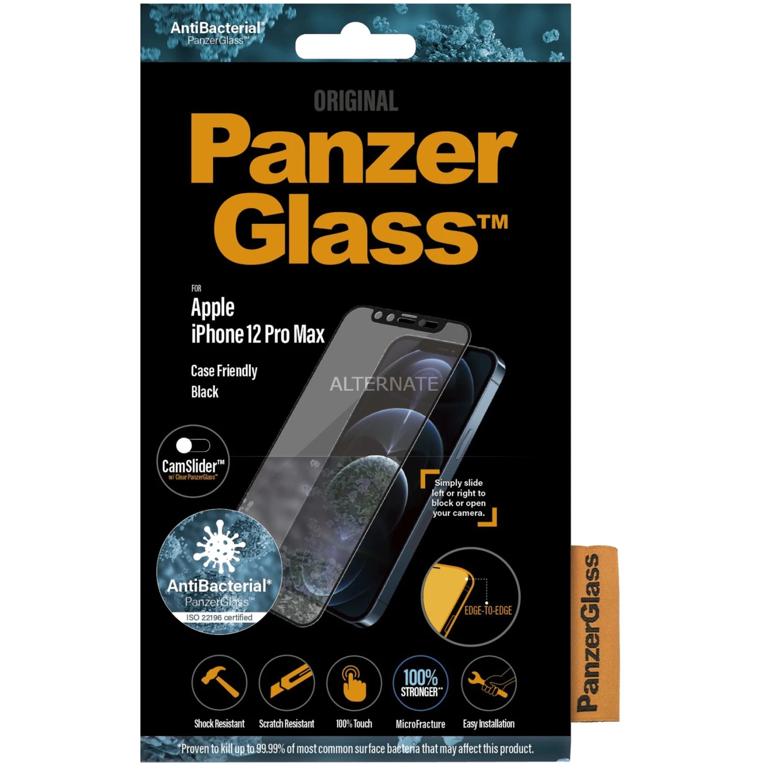 Displayschutzfolien PanzerGlass Displayschutz Cam-Slider, Schutzfolie (transparent/schwarz, IPhone 12 Pro Max)