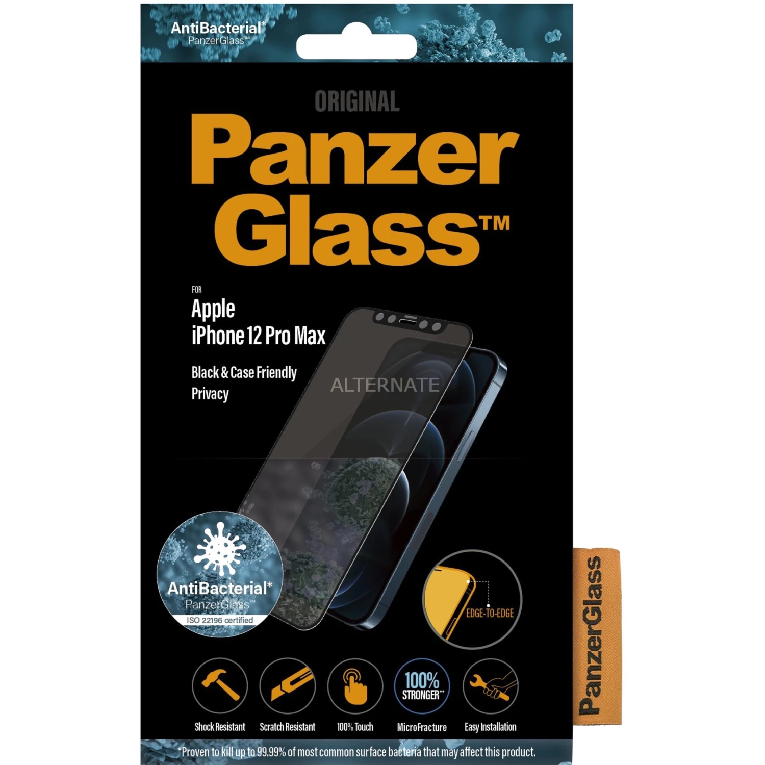 Die Privacy Displayschutzfolie von PanzerGlass in schwarz bietet nicht einfach nur einen hohen Schutz gegen Kratzer, Stöße oder Stürze sondern schützt auch gleichzeitig die Privatsphäre des Nutzers. Durch den Blickschutz kann nur der Nutzer die Inhalte auf dem Display sehen, sodass Dritte keinen Einblick darauf haben. Eine spezielle antibakterielle Schicht sorgt zudem dafür, dass die Oberfläche und auch der Nutzer vor diesen geschützt bleiben.