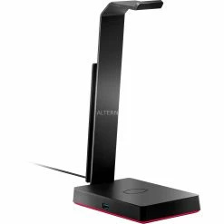 Die Cooler Master GS750 ist eine praktische Headset-Halterung, die mit einer integrierten Qi-Ladefunktion aufwartet – so kann das Headset bequem abgelegt und das Smartphone aufgeladen werden. Über die beiden USB-A Ports lassen sich weitere Peripheriegeräte anschließen, außerdem besitzt die GS750 eine integrierte RGB-Beleuchtung.