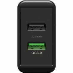 Das schwarze goobay Dual-USB Schnellladegerät USB/QC3.0 28W lädt bis zu zwei Geräte gleichzeitig. Der USB QC3.0 Schnellade-Port für Geräte mit Quick Charge (QC3.0) Standard ist bis zu 4x schneller als Standardladegeräte (18W). Ein zusätzlicher USB-A Anschluss ermöglicht das gleichzeitige Laden von zwei Geräten (10W). Die Integrierte Elektronik schützt bei Überlast, Überhitzung und Kurzschluss und bietet somit die optimale Sicherheit.