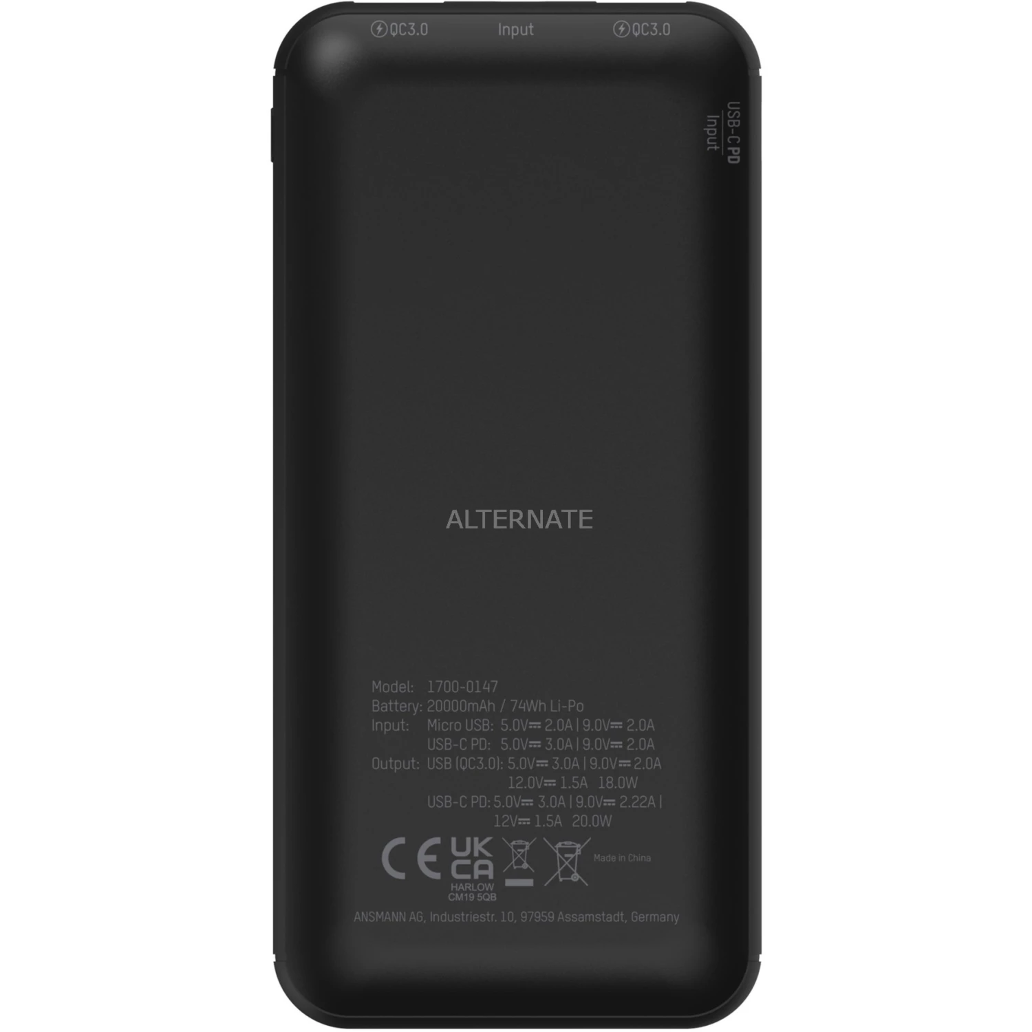 Powerbanks Ansmann Powerbank 20000mAh PB320PD (schwarz, 20.000 MAh)
